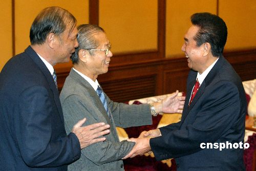 八月十六日,国务院台湾事务办公室主任陈云林在北京会见两岸客货运包机促进访问团一行。作者:廖文静