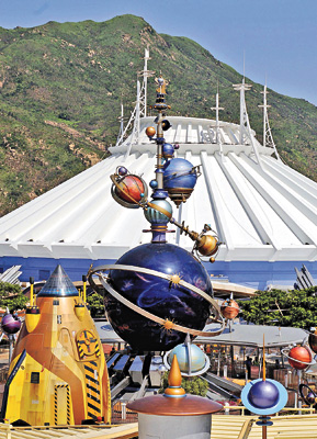 该款名为“飞越太空山”(SPACE MOUNTAIN)的室内过山车机动游戏,几乎每个迪士尼主题公园均有这款游戏,只是“级数”各有不同。