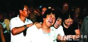 20时25分,高秀敏的遗体被家人抬上了灵车,黄色单子上“流芳千古”的字样分外地让人感伤。漆黑的小道,灵车缓缓而行……几名年轻的女孩拼尽了气力,低着头往人群中挤,引起了人群的骚动和指责。“求求你,让我们进去吧,我们是她的学生,要看老师最后一眼”,一个小女孩带着哭腔的话让人群向后闪开,几个女孩扶着灵车泪流满面,其中一个还双手合十,低声为已逝的恩师祈福。