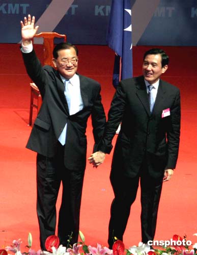据“中央社”报道,连战在交接致词时说,马英九年富力强、学识丰富,“有目标、有理想”,希望国民党在马英九的领导下厚植实力,因应未来一切可能的挑战,“让我们告别在野、迈向执政”。