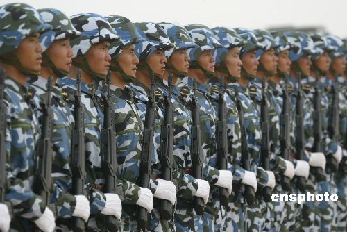 8月20日,中俄联合军事演习第二阶段在中国青岛开始,第二阶段主要演练投送与展开、调整决心和组织协同,中俄双方参演兵力近万人。图为参加中俄联合军事演习的中国参演部队在演练场集结待命。作者:王丽南