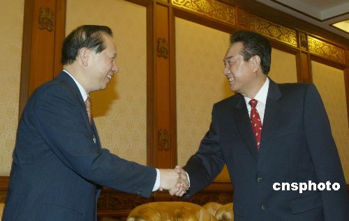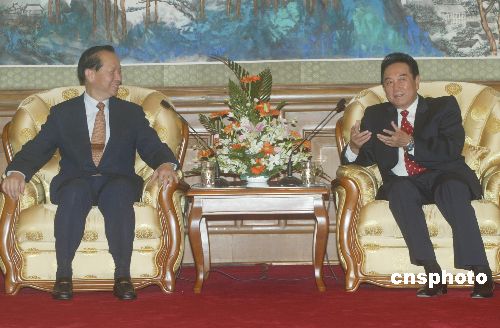 八月二十二日,中共中央台办主任陈云林在北京钓鱼台国宾馆会见亲民党秘书长秦金生。作者:史利