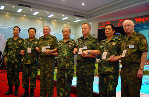 “和平使命—2005”中俄联合军事演习第二阶段22日结束。中俄双方总导演对这一阶段取得的成果表示祝贺,对表现突出的两国军官给予褒奖,并颁发了奖章。
