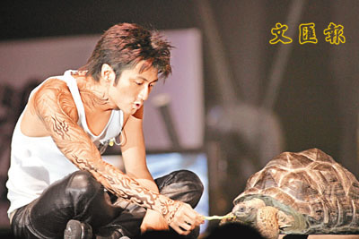 中新网8月23日电 据文汇报报道,达明一派与谢霆锋首度合作的“同场异梦音乐会”,前晚在会展举行,近年人气不继的霆锋,为求抢镜竟连家中的八十磅巨龟也要出动,又罔顾观众安危,突然飞身跳向观众席的观众,累及部分观众跌地上,幸好未有酿成意外。