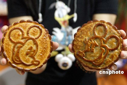 距离中国传统节日中秋节还有一些时间,但是各种不同品牌、口味、风格的月饼相继上市。八月二十三日在北京农展馆举行的中国礼品展上,有着美国迪士尼公司授权的“米老鼠”月饼登陆中国市场,为庞大的中秋月饼市场注入一种新的理念。这也是首次著名的美国迪士尼洋品牌与中国传统节日食品的结合。作者:任海霞