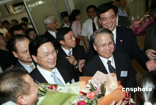 中国国民党中央组织发展委员会主任委员廖凤德(前左二)、台中市党部主任委员沐桂新(前左三)率领的台中市党部访问团八月二十三日下午抵达厦门,与中共厦门市委开展互访交流,在机场受到中共厦门市委副书记陈修茂等热烈欢迎。这是两党政党基层交流的“首航之旅”。作者:毛建军