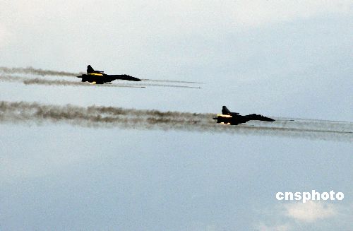 图:中俄联合军演 中国空军歼击机双机同时发射火箭弹