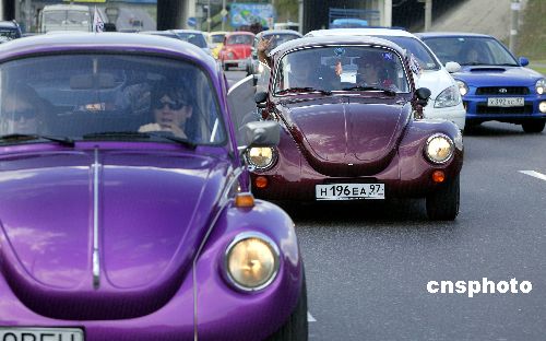 8月23日,一些大众“甲壳虫”汽车的爱好者开着他们收藏的甲壳虫汽车列队在俄罗斯首都莫斯科街头行进,吸引了很多市民驻足观看。作者:Ic/cnsphoto
