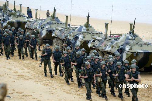 图:中俄联合军演 俄罗斯陆战队员等待装船返航