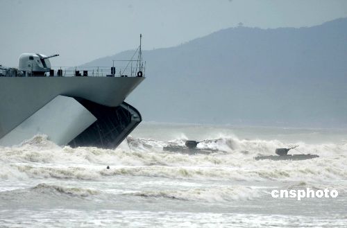 今天对参演的两栖部队来说,可不是个好日子。海上的风力6到7级,浪高2.5至3米,大雨。