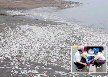 由于数量庞大,加上面积范围广大,环保部门除了前往采样之外,还请求海巡署岸巡大队协助调查,并申请遥控直升机空拍,了解鱼群暴毙的范围。“环保局”稽查员张正祥表示,暴毙的鱼群种类包括黄鱼、豆仔鱼等五六种,以黄鱼种类最多,由于这些鱼类鱼鳍向前、嘴部紧闭,加上眼睛突出及腹部肿涨,初步断定是工业区排放废水导致鱼群中毒。