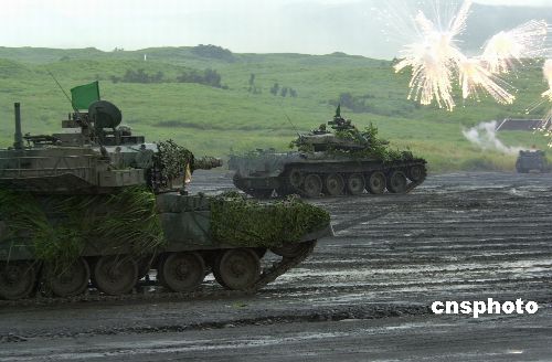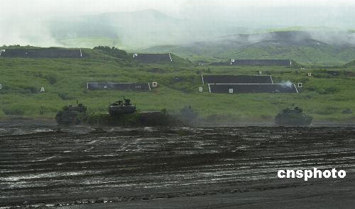 日本陆上自卫队二十五日在位于富士山麓的静冈东富士演习场举行二00五年度综合火力演习。共出动人员约二千名,战车约六十辆,各类火炮约四十门,飞机约二十架,其他车辆约四百辆。作者:王健