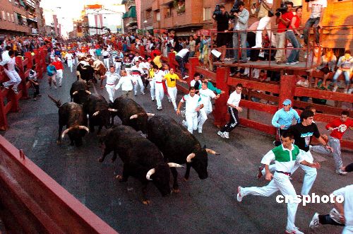 8月26日,第二届马德里圣·塞巴斯帝安奔牛节开幕。大约有2200名爱好者参加了这一活动.他们在凶猛的公牛之前四散奔逃,以此寻求刺激。有6人在活动中受了轻伤4人被送往当地的医院。据悉,该活动将持续到8月31日。作者:Ic/cnsphoto