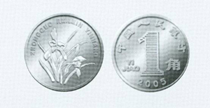 第五套人民币1角硬币材质由铝合金改为不锈钢,色泽为钢白色。其正背面图案、规格、外形与现行流通的第五套人民币1角硬币相同,即正面为“中国人民银行”、“1角”和汉语拼音字母“YIJIAO”及年号,背面为兰花图案及中国人民银行的汉语拼音字母“ZHONGGUO RENMIN YINHANG”,直径为19毫米。
