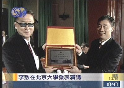 中新网9月21日电 台湾知名学者、作家李敖在北京大学发表演讲后,北京大学方面与李敖互相赠送了礼物。