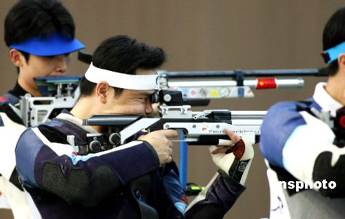 中新社南京十月十三日电 (记者 吴庆才)云集众多奥运冠军的十运会射击比赛今天开幕,首先进行的射击男子十米气步枪决赛半路杀出“程咬金”,大器晚成的三十岁福建选手张良勇夺桂冠。雅典奥运会冠军朱启南未能续写神话,无缘决赛,爆出一大冷门。