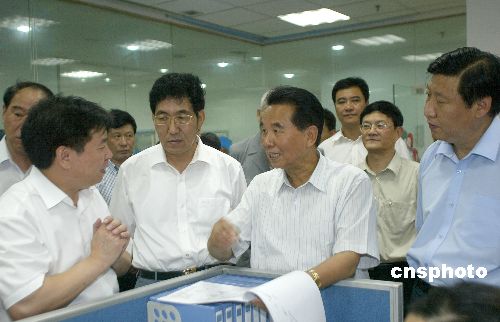 2005年6月底至7月初,中共中央政治局常委、中央纪委书记吴官正在浙江省宁波市等地考察指导工作。 作者:张和平