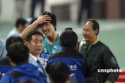 中新社南京十月二十二日电(记者 沈晨)平静了一日的南京奥体中心体育场今晚再度升温,两位奥运会冠军刘翔与邢慧娜激起了人们对田径赛事的热情。百米栏冠军刘翔再度出场摘银而归,由他出任第四棒的上海接力队最终以三十九秒六五获得男子四乘一百米跑亚军。