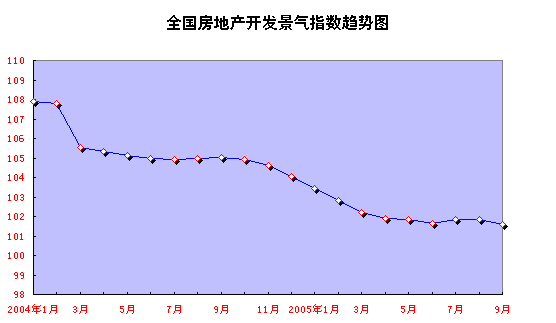 中新网10月25日电 据中国国家统计局网站消息:9月份,“全国房地产开发景气指数”为101.57,比8月份回落0.29点,比去年同期回落3.46点。