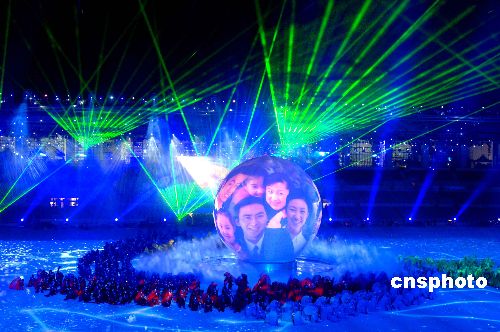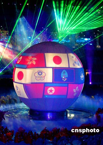 第四届东亚运动会二十九日晚在澳门体育场举行盛大开幕式,“东亚之光──澳门交响诗”大型文艺会演,场面宏大,气势宏伟。 作者:宋吉河