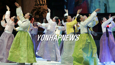 距离2005釜山APEC峰会还有一天的11月17日下午,在韩国釜山会展中心展厅进行了晚会排练。(韩联社)