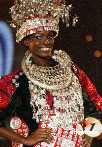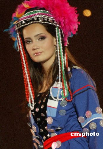 日前,由中国广东电视台主办的“2005金威国际超模大赛总决赛”上,来自美国、英国、法国、意大利、巴西、阿根廷及中国等三十八个国家和地区的四十八位选手,汇聚广州凤凰城酒店参加大赛角逐。此次大赛主题为“祈盼世界和平弘扬民族文化”。图为世界各国参赛佳丽在大赛上演绎中国传统民族服饰风采。作者:钱兴强