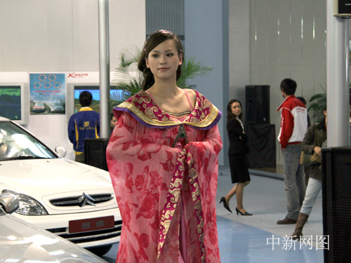 穿古装的车模?东风雪铁龙的模特就是在为您展示“时光之旅”。(郜威伟)