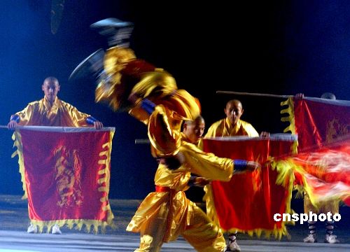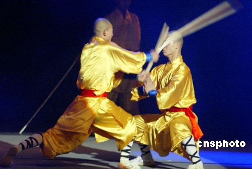 大型少林功夫表演秀《寺院内外》十一月二十三日至二十五日在北京保利剧院上演。寺院内外》表演团由十八名少林武僧组建而成,其队员来自少林寺僧团和少林寺武术学校,年纪最小的仅有六岁。该剧以少林寺武僧的日常生活为主线,以武术的形式向观众们演绎寺院的生活。 其中 “饭勺功”、“扫帚功”等节目把少林武僧的一些日常生活用品改编成武术舞蹈的形式,重新创造出一个新的功夫形式。作者:韩艺冰