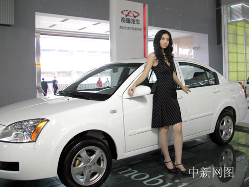 备受国人关注的奇瑞汽车在广州车展上却显得很低调,无论是展台规模还是内容都不能和合资及外资大厂相比。图为奇瑞即将上市的A520轿车,以及相对低调的模特。(郜威伟)