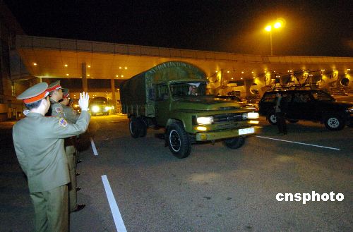 图为25日凌晨陆军分队准时通过落马洲口岸进驻香港。作者:洪少葵