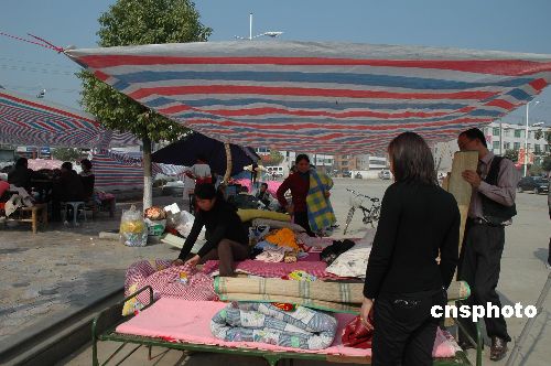由于地震造成大量房屋损坏,九江市因受灾离开居所的灾民数量大约在四十万人。记者今天在瑞昌城区看到,虽然有大量居民生活在街头,但基本上喝水、吃饭、御寒等都有保障,目前未因灾发生一起刑事案件。九江市抗震救灾指挥部发言人曹俊良对记者表示,截至今天凌晨三时,九江市灾区基本解决市民在街头露宿问题。