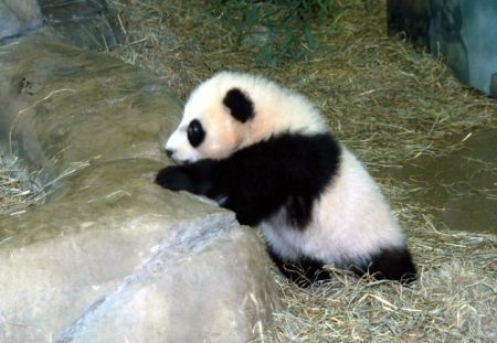 中新网华盛顿十一月二十九日电 (记者 余东晖)在美国国家动物园降生不到五个月的熊猫“泰山”二十九日清晨首次与外人见面,在动物园举办的“媒体见面会”上,这个毛绒绒的小家伙活泼好动,憨态可掬,令上百名记者怜爱不已。
