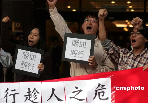 图:台湾青年声讨银行业以不当方式发放信用卡