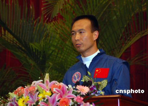 图:航天员费俊龙返回家乡作报告