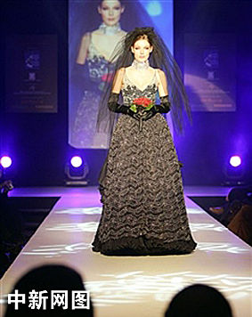 2005年12月7日,波兰首都华沙意大利时装秀上,一名模特展示设计师Laura Pieralisi的设计作品。