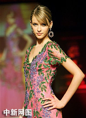 2005年12月7日,波兰首都华沙意大利时装秀上,一名模特展示设计师Laura Pieralisi的设计作品。