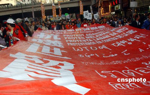 中新社香港十二月十八日电 题:世贸在香江:反世贸最后一日示威大致有序