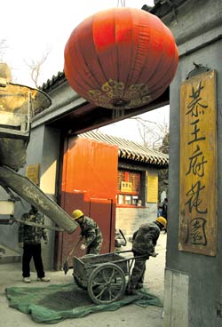 “恭王府的古建筑是独一无二的标本。”国家文物局古建专家组组长、研究员罗哲文这样评价。12月5日,恭王府府邸正式被宣布开工修缮,这也是自1850年以来规模最大的一次。预计施工总面积达1.26万平方米,国家斥资4亿元,其中1.83亿元用于复原和修缮。2007年,恭王府将建成国内首个王府博物馆,充分展示清代王府的体制、器物和生活状态。