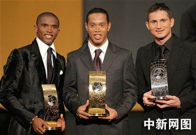 中新网12月20日电 2005年“世界足球先生”北京时间今天凌晨出炉。刚刚夺取了欧洲足球先生称号的巴西中场罗纳尔迪尼奥(小罗纳尔多)成功蝉联,以极大优势压过兰帕德与埃托奥,连续第二年获得该称号。