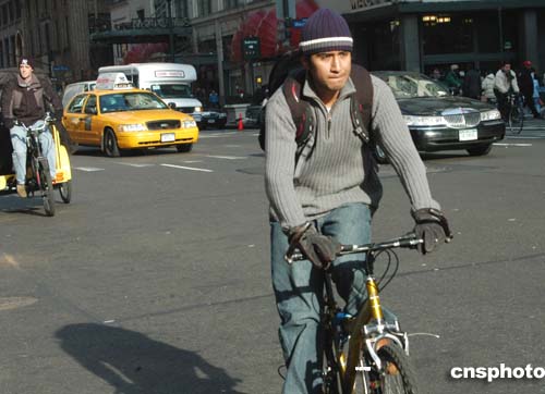 中新网纽约十二月二十一日电 公交系统罢工进入第二天,在没有公车和地铁运营的纽约,大街上多了自行车、三轮车、滑板车、出租车。依靠地铁和公车出行的纽约人不得不如此选择代步工具,而且还有很多人选择了步行。