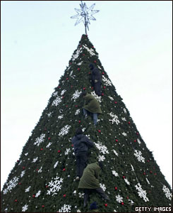 北京的工作人员正在装饰这棵圣诞树