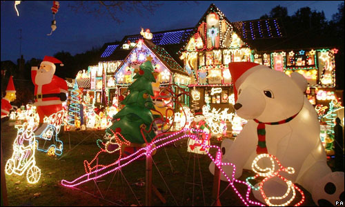 伦敦西面雷丁附近一家人把房子装饰得充满圣诞气氛
