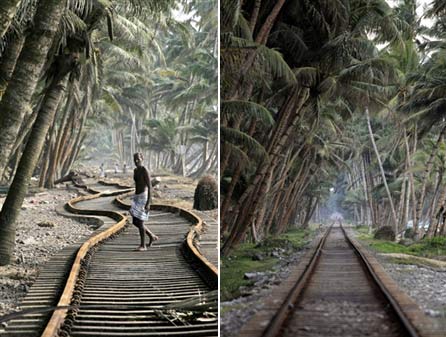中新网12月23日电 据法新社报道,距离斯里兰卡科伦坡40公里的南部村庄卡拉姆拉村附近。左图为2005年1月2日,距离被海啸冲歪的铁轨,右图为2005年11月28日,恢复后笔直的铁轨。(春风)