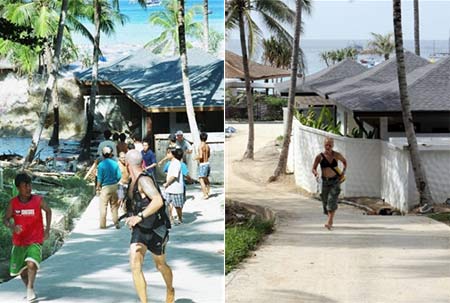 中新网12月23日电 据法新社报道,泰国南部沿岸安达曼海国王岛。左图为2004年12月26日,海啸呼啸着袭向国王岛时,游客惊慌逃离的场景。右图为2005年12月12日,海啸过去将近一年后,国王岛西部新建的一所用于欣赏海景的平房。(春风)