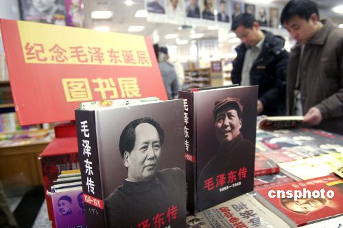 12月14日下午,读者在北京王府井新华书店“纪念毛泽东诞辰”专柜前翻阅书籍。12月26日是毛泽东同志诞辰112周年。北京王府井新华书店设立专柜,将近年来比较畅销的有关纪念毛泽东的图书汇在一起,方便人们翻阅和选购,受到读者的欢迎。作者:陈晓根