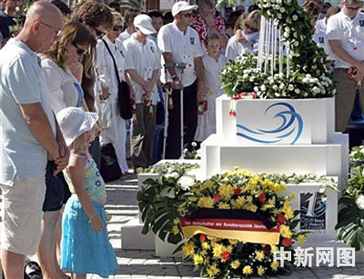 12月26日,大批海啸幸存者及遇难者家属聚集到泰国普吉岛纪念2004年12月26日海啸发生一周年。人们把鲜花抛向大海,互相拥抱,擦去眼泪,一起纪念在这次海啸中丧生的遇难者。