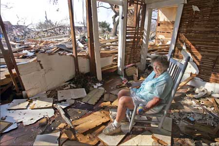 5.飓风过后的家——2005年9月4日,61岁的利昂娜-瓦特在飓风过境后回到位于密西西比州长滩的家中,房屋被飓风撕扯的支离破碎、面目全非。时至今日,还有大量的飓风灾民无家可归,居住在政府提供的旅馆里。(美联社图? onkeypress=