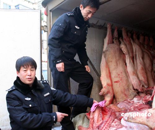 12月30日,沈阳市巡警支队打假办,接到举报紧急出击,当场抓获贩卖病死猪肉犯罪嫌疑人4名,病死猪32头和2000多公斤的分割肉共计近4000公斤。经审查,这些猪肉贩子为牟取非法利润,在彰武县以每斤2.5元至3元的低价收购病死猪,偷运至沈阳某农贸市场销售,从中牟取暴利。目前,贩卖病死猪犯罪嫌疑人已被刑事拘留。 作者:黄金昆
