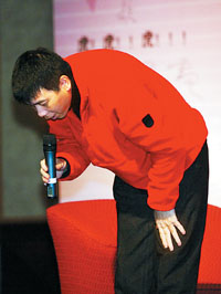 现场的气氛由于有冯导的“搅和”而显得十分活跃。比如冯导自谦不是贺岁片之王,“贺岁片之王不是我说的,是你们大家封的,前年的《功夫》、去年的《无极》都比我票房高,所以我不是之王。”