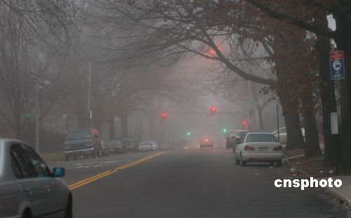 连日来,纽约的最高气温超过摄氏十度。一月十三日早晨,纽约出现大雾天气,能见度较低,车辆行驶缓慢。 作者:龚文谟